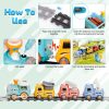*Magnetic Locomotive with 3 Trucks*:The locomotive easily connects with three magnetic trucks—a dump truck,fire truck,and communication truck. The magnetic connections allow the trucks to link securely to the locomotive,smoothly following it along the tracks and enabling kids to create their own custom train formations with ease.