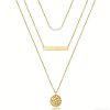 Dainty Layered Choker Necklace, 14K Gold Plated Y Pendant, Multilayer Bar Disc Necklace, Adjustable Layering Choker Necklaces for Women